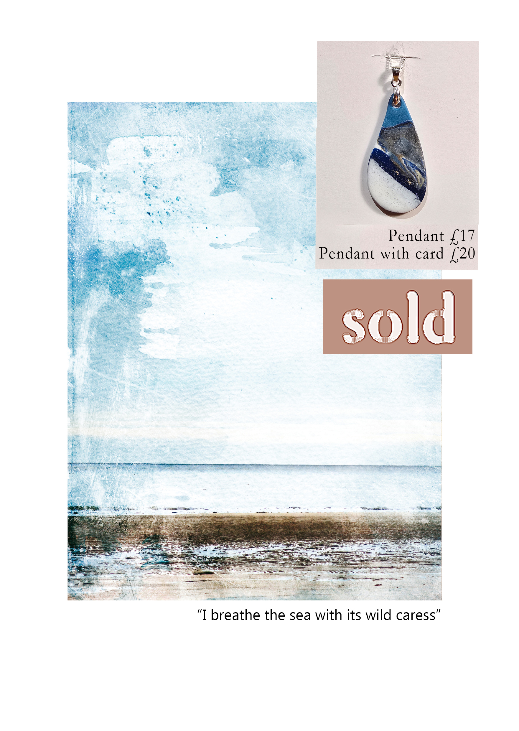 Polymer clay pendant with sterling silver chain (16″ or 18″) and jump ring